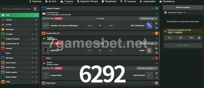 A aposta 6292 oferece aos jogadores a experiência mais conveniente de apostas em eSports!